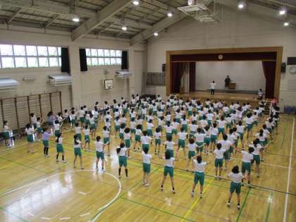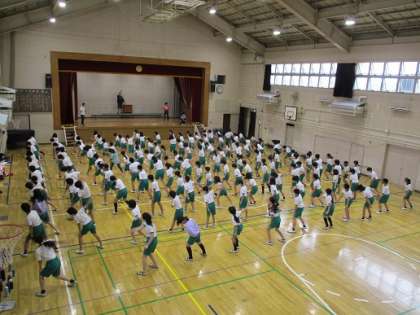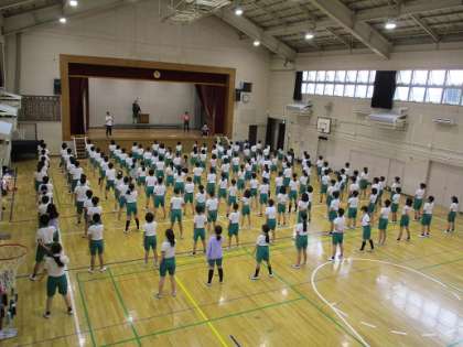 2校時、体育館での運動会学年表現の練習の様子です。今日は雨のためできそうもないので、体育館での練習はダンスの練習に費やしています。