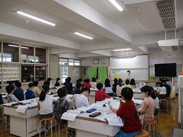 午前中の5年生の授業の様子です。今日は雨なので運動会練習は体育館の1時間のみでした。少し体を休めることができました。