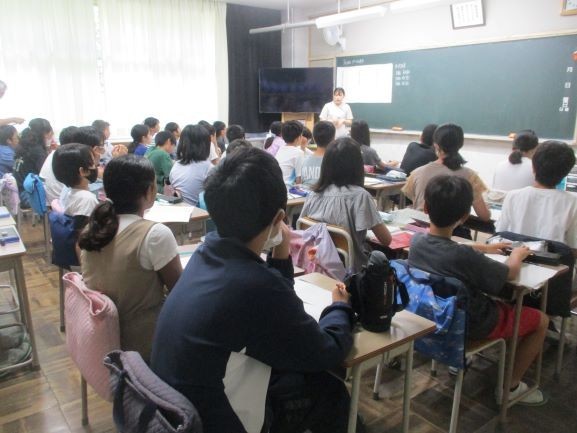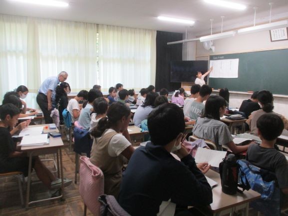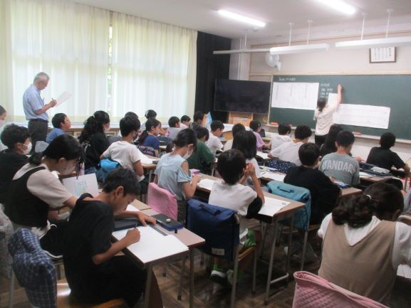 1校時の6年生の算数科の授業です。若手研修の一環として学校教育支援センターから講師の先生が授業を観に来ています。