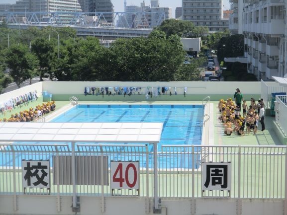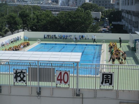 7月5日金曜日1・2校時の2年生水泳の授業(2回目)