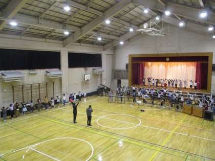 今日は1・2校時が2年生の体育館練習です。内容が盛りだくさんなので大変ですが、頑張っています。頑張れ!2年生!