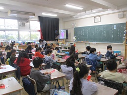2校時の1年生の授業です。上から生活科、音楽科では校歌を聴いていました。最後は算数科です。