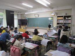 2校時の2年生の授業です。上から国語科、テスト返し、図画工作科です。