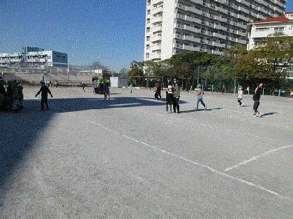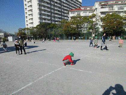 晴天ですが寒空の下、1年生は元気に校庭で走り回っていました。6年生が日光移動教室で不在なので、1年生だけで広い校庭を独占して、楽しく遊んでいました。