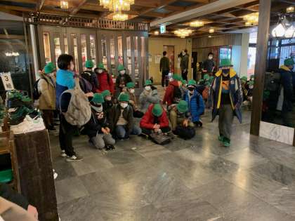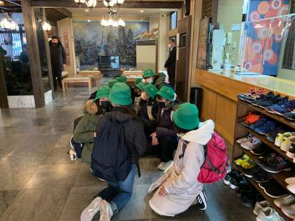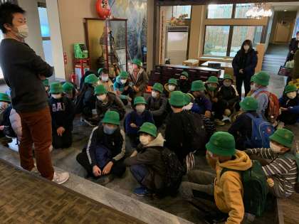 今日は、感染防止対応で人数制限が木彫りの施設であるので、A、Bグループに別れます。まず、Aグループが出発です。