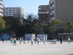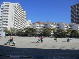 2校時1年生2クラスの外体育の様子です。
