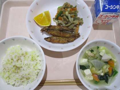 きびごはん・わかさぎのこうみあげ・はすのごもくきんぴら・
