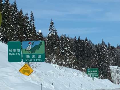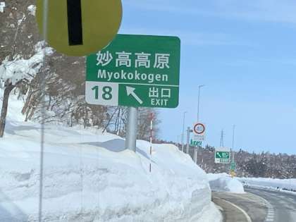 妙高高原の出口から高速道路を降りました。雪はたっぷりです。