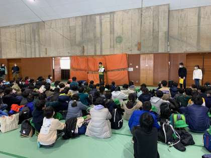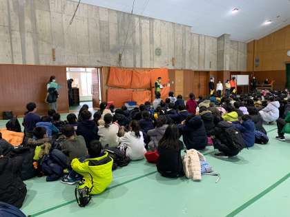 国立妙高青少年自然の家のスタッフの方からここでの過ごし方のルールの説明を受けています。
