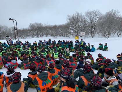 雪上リレーです。ルール説明をしています。