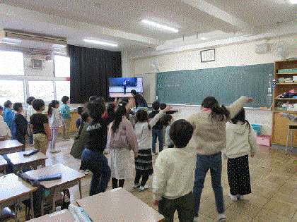 「6年生をおくる会」でお世話になった6年生に感謝の気持ちをこめてダンスの練習をしているクラス、前をしっかりと向いて授業に集中しているクラスがありました。