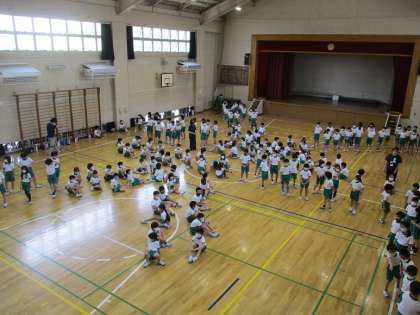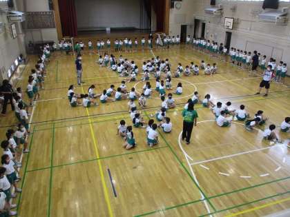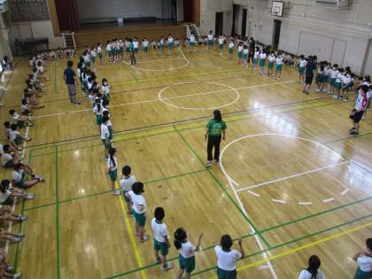 体育館で隊形の確認です。これが校庭だとまた感覚的に違ってくるので難しいです。