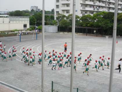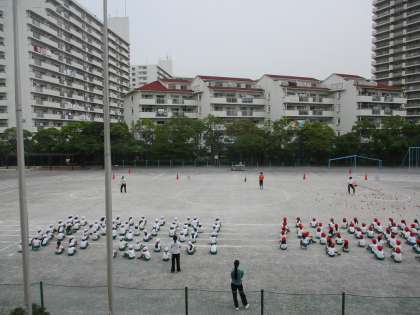 3グループに分かれ、時間を決めて走って玉入れの場所まで行って玉を入れるというルールです。なるべくはやく玉入れの場所まで到達し、そこからは玉入れに玉を入れる技術が必要とされます。