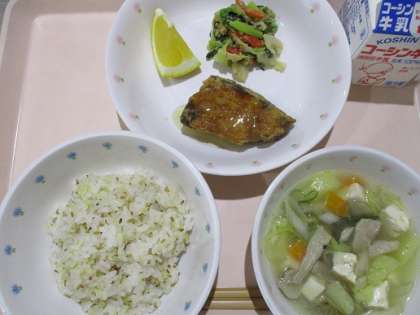 ごはん・かつおのあげびたし・やさいのすみそからしあえ・