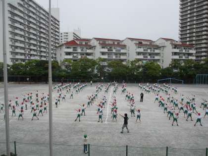 3年生の学年表現の練習です。2回の隊形移動も少しずつスムーズになってきました。