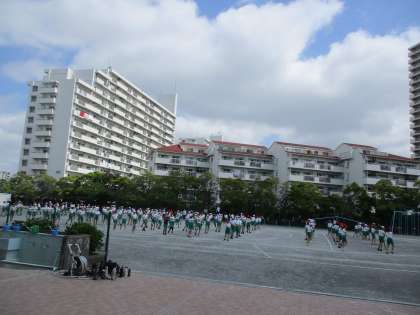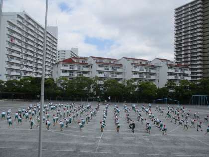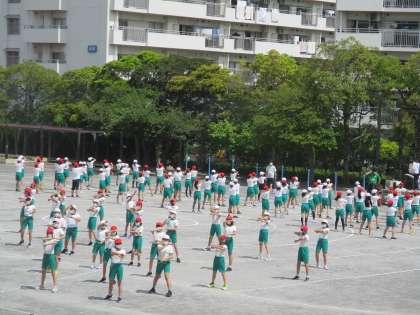 学年表現の練習でした。踊り込みというよりも、隊形移動の確認とスムーズな移動の練習です。