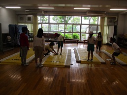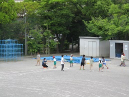 今日が2年生の体力テストでした。2年生一人に対して、二人の5年生がサポートにつきます。