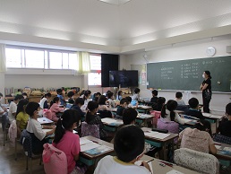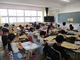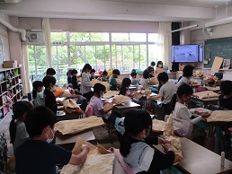 算数科の授業に楽しい雰囲気で取り組んでいる姿が見られました。2クラスは図画工作です。くしゃくしゃペットという題名の作品は公開時に見られると思います。