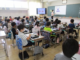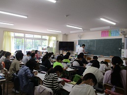 1・2校時の6年生の授業の様子と、3年生の教育実習生による書写の授業の様子です。