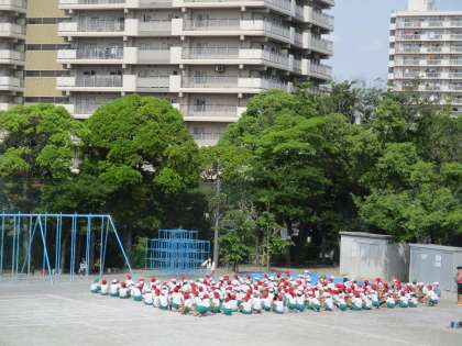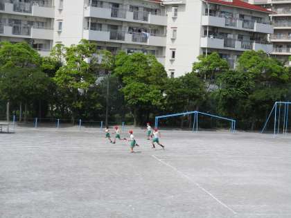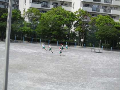 6校時5年生は全クラス合同で体力テスト50m走を実施しました。