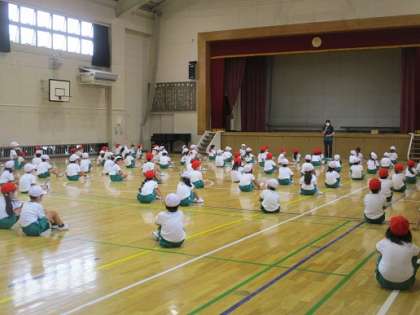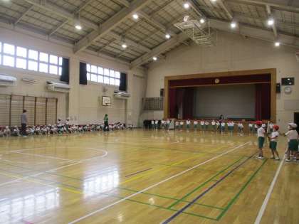3校時1年生は、体育館で体力テスト及び体力テストのシャトルランの練習でした。