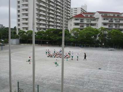 2校時4年生の校庭体育、音楽室、教室の5年生の授業です。