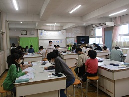 6年生3クラスの授業の様子です。家庭科が2クラスです。