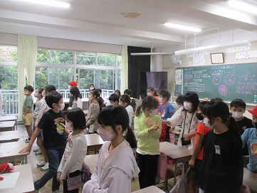 昨日、4年生&3年生の縦割り班活動の教室編です。3・4年生合わせると400名近くいるので、校庭だけではできない班もありました。