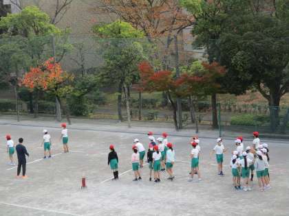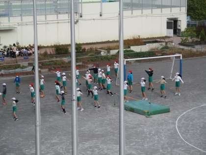 5年生1校時の校庭体育の様子です。今日は秋晴れで気持ちよく体育の授業ができました。