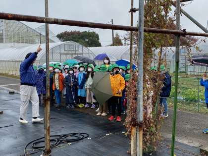 Aグループが、お花についての説明を受けています。