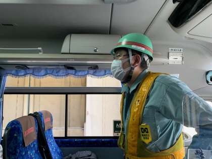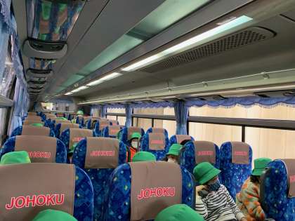 Bグループは、バスの中から説明を受けています。
