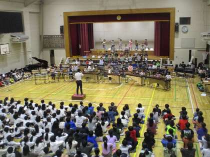 4年生と6年生を前に良い緊張感の中、一生懸命の表現でした。頑張れ!2年生!