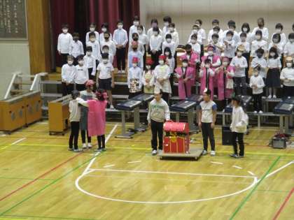 緊張が集中につながり、昨日のリハーサルよりも良かったです。つなぎの観客と協同の場面は、6年生なのでノリが良かったです。