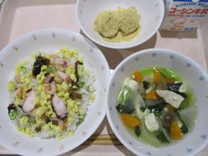 まつりずし・とうふとやさいのすましじる・きびだんご・牛乳