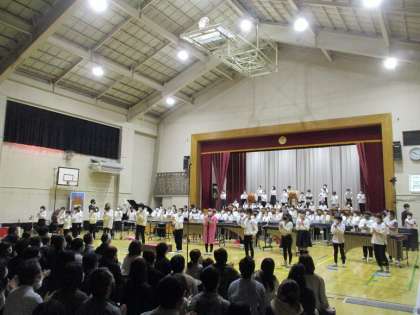 保護者鑑賞日、4年生の気合いの入った英語劇、合奏のパフォーマンスです。