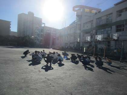今日からマラソン大会に向けての朝練習が始まりました。写真は4年生ウォーミングアップの様子です。
