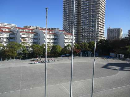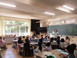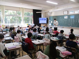 1校時の1年生教室の授業と3年生2クラス合同の外体育の授業です。