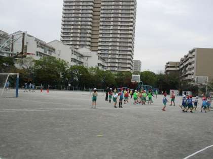 月曜日はクラブ活動の日です。写真は、ハンドラケットベース、ミニサッカー、バスケットボールクラブです。