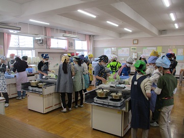 1・2校時に5年生の調理実習が行われました。どのグループもみんなで協力し、おいしいゆで生野菜サラダをつくっていました。