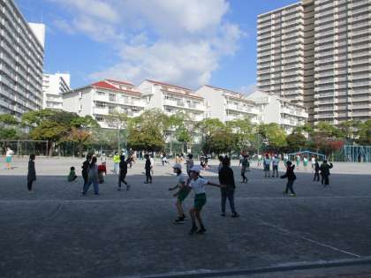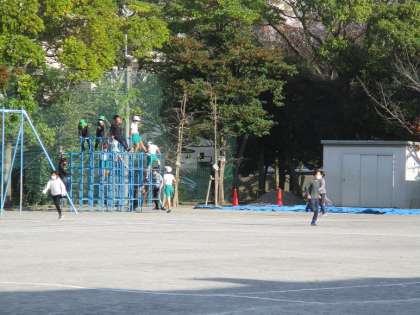 さきほどの給食中とは違い、昼休みは外へ出て元気一杯に声を出して体を動かす子供たちです。