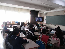 5校時の4年生の授業の様子です。ビデオは理科の実験のビデオです。