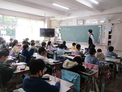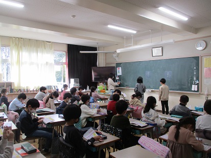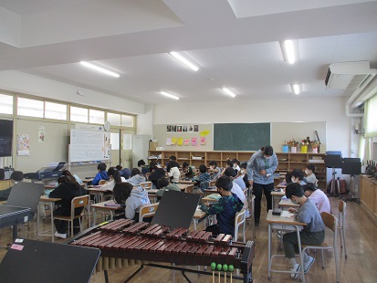 4校時の3年生3クラスの授業です。音楽の授業は担任の先生以外に教わる数少ない授業です。3年生は他は算数の授業になりますね。
