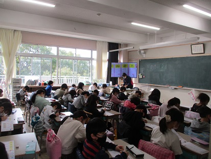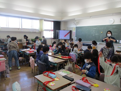 4校時の2年生3クラスの授業です。6年生へのプレゼント作品ができました。自分が幼児の頃の写真を持ってきているクラスもありました。生活科の授業ですね。