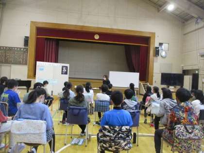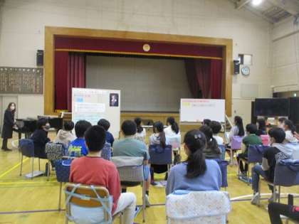 今日は1クラス以外は先生方の研修会で午前中授業でした。清新一小では、音楽部の授業研究が行われ、6年生の1クラスを使って授業研究が行われました。