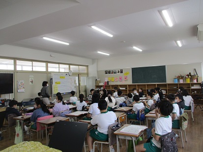 4年生の3校時の3クラスです。音楽科以外の2クラスは、交換授業です。3クラスで教科担任制になります。