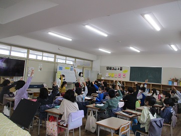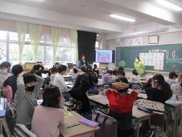 3クラス共に担任以外の授業です。4年生は発音でよく声を出しています。