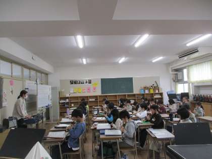 5校時の高学年2学年の体育と3年生の音楽の授業です。音楽の授業ではソプラノリコーダーの練習をしています。