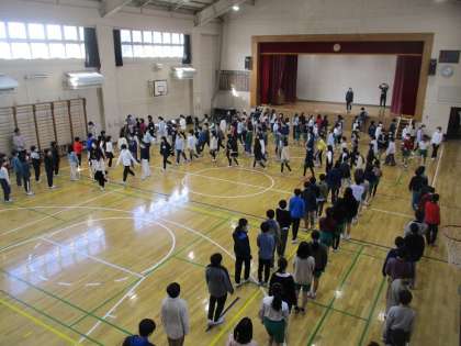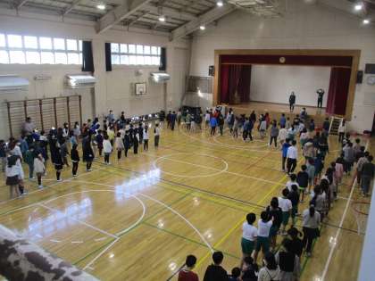 1校時6年生が多目的室で、5年生が体育館で6年生を送る会に向けての練習をしていました。
