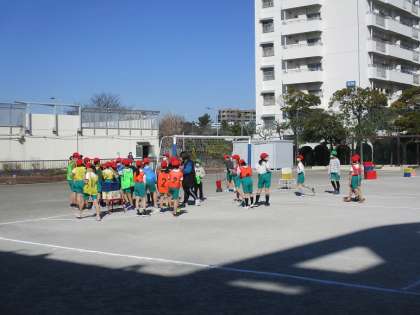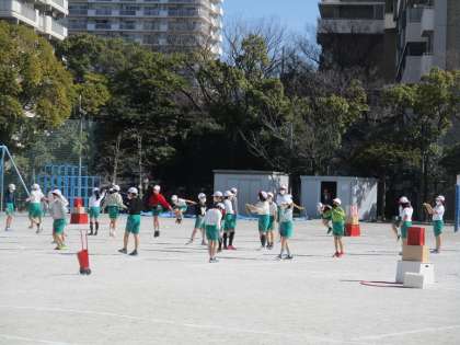 校庭体育が2クラス、体育館体育が1クラスです。