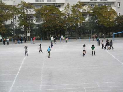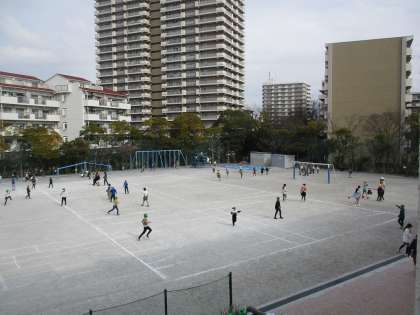今日の昼休みの校庭は2年生と5年生です。このくらいが動きやすくていいですね。これ以上多くなると怪我が多くなります。